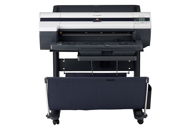 The Canon imagePROGRAF iPF610 24″ large format printer produces vibrant full-bleed posters, clear text documents and crisp line drawings easily and quickly. Its 24″ output will impress clients and colleagues by communicating visual layouts with eye-catching color and exacting details. The imagePROGRAF iPF610 features a Reactive Ink system consisting of four highly colorfast dye inks – Cyan, Magenta, Yellow and Black – plus two channels of pigment-based matte black.